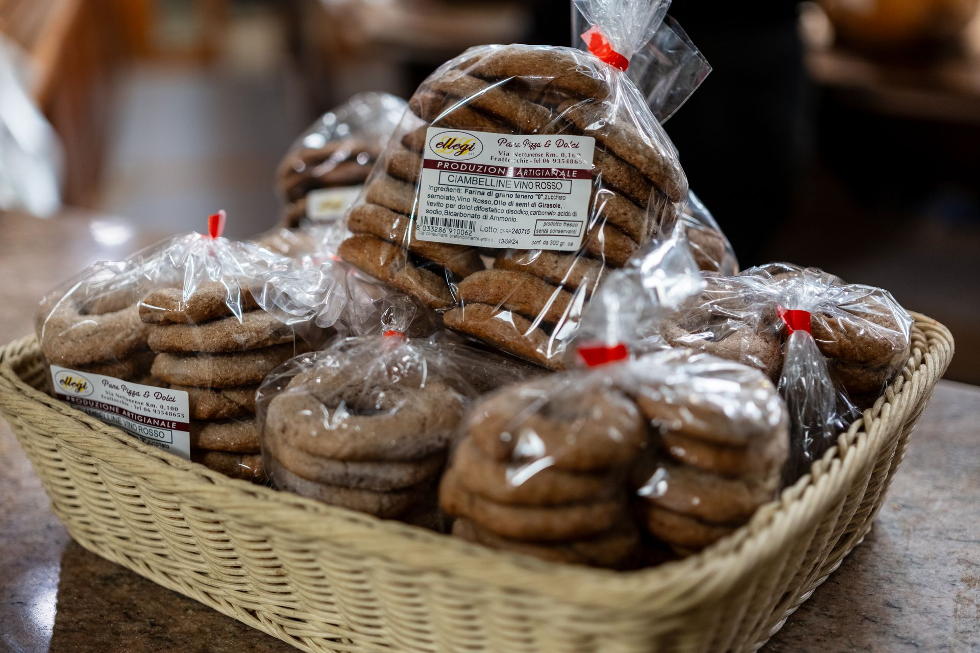 Questi biscotti, realizzati artigianalmente secondo antiche ricette, rappresentano un viaggio nei sapori genuini del territorio. Le ciambelline, fragranti e dal gusto avvolgente, sono perfette da abbinare a un buon bicchiere di vino, mentre i tozzetti, arricchiti con nocciole o mandorle, offrono una croccantezza che conquista al primo morso